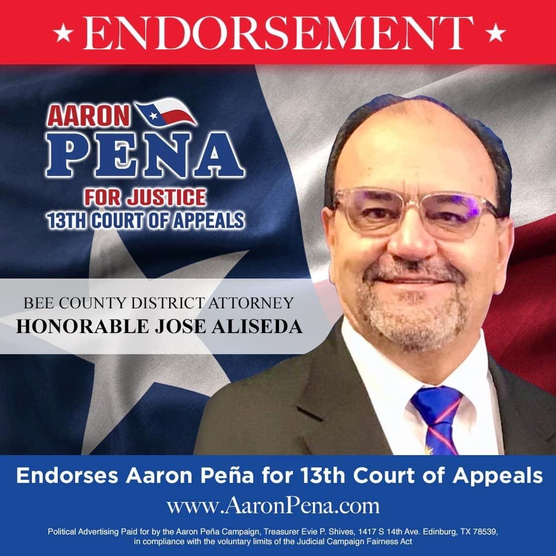 Aaron Pena Jr. Texas Thirteenth District Court of Appeals Place 3. $12,548Cash ... Are you Aaron Pena Jr, or someone associated with their campaign?