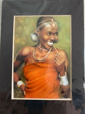 Abdul Badi Signed Matted Print Woman 7" x 5" 1991 - eBay