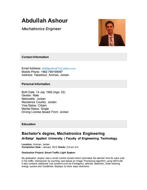 Abdullah Ashour CV by Abdullah Ashour, has 2 slides with 479 views. Abdullah Ashour CV. More options. Download. 2 pages ...