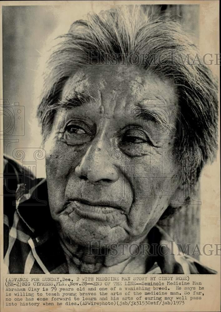 1973 Press Photo Seminole Medicine Man Abraham Clay in Big Cypress, FL. ; Item Number. 375778208839 ; Type. Photograph ; Image Color. Black & White ; Listed By.