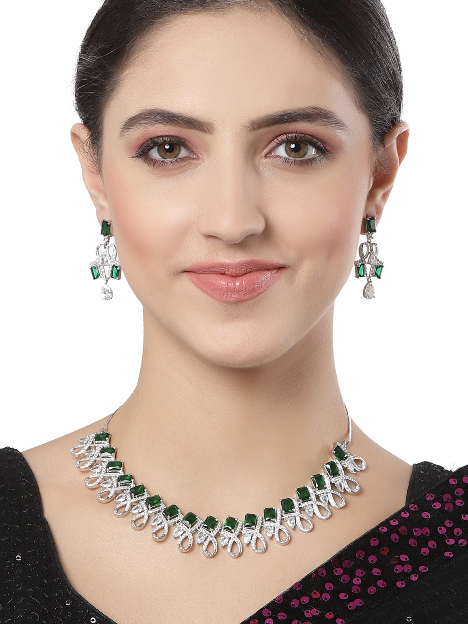 AD green necklace set - Kurti Connection USA