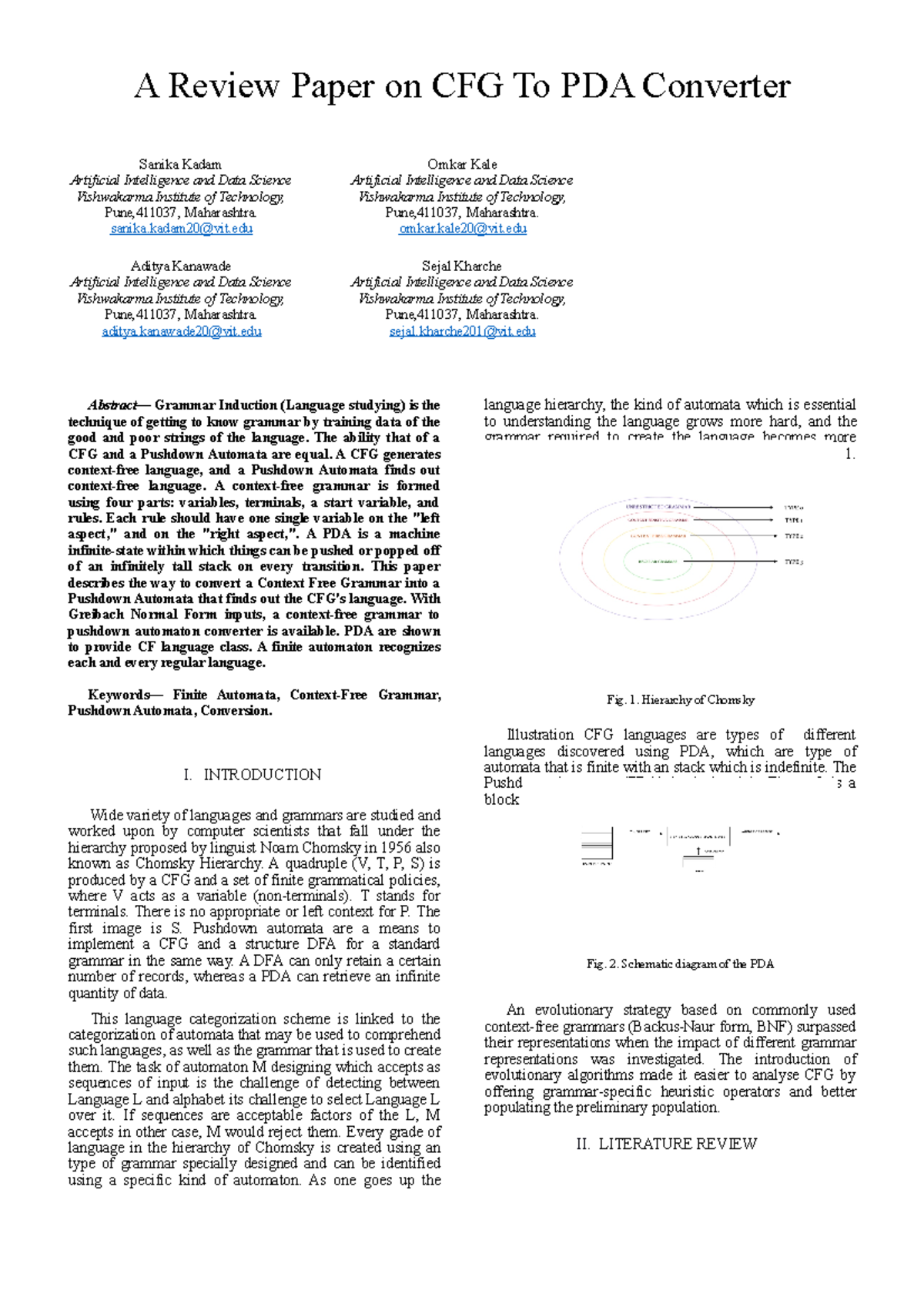 A Review Paper on CFG To PDA Converter - Studocu