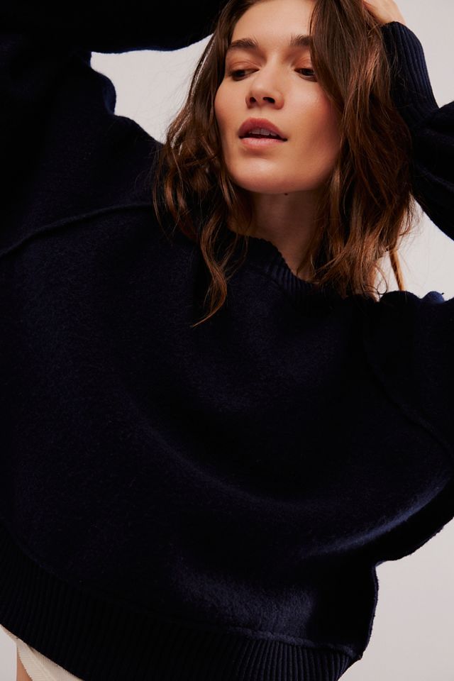 Free People Boiled Wool Adrian Crew In Navy - 58% Off - Editorialist