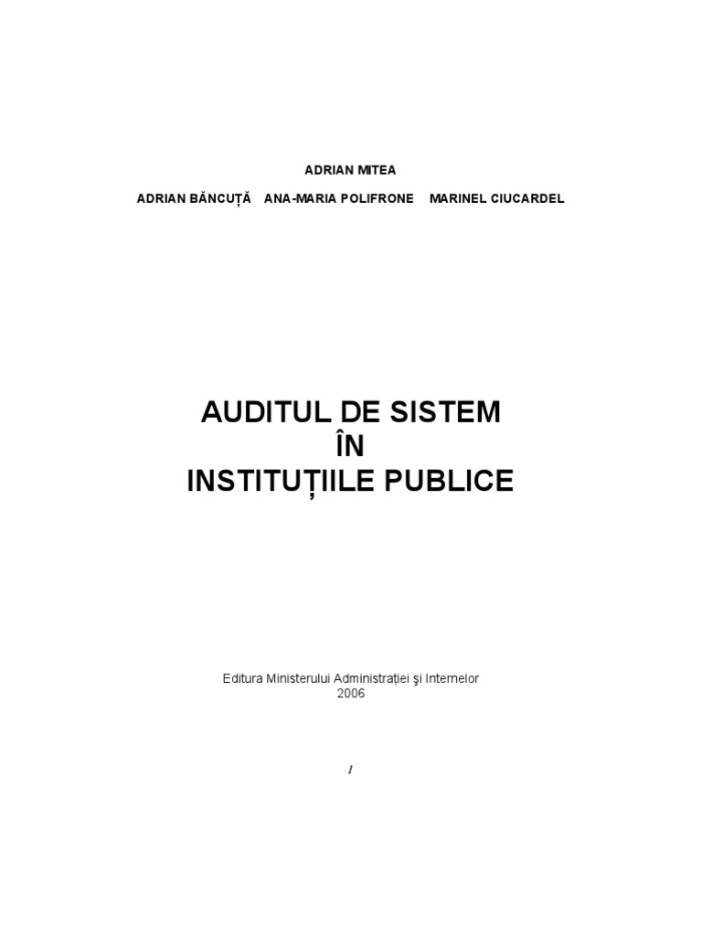 Auditul de Sistem ÎN Instituţiile Publice: Adrian Mitea Adrian Băncuţă Ana-Maria Polifrone Marinel Ciucardel. 273 pagini. Musat Perceptia Gandirea Camp ...