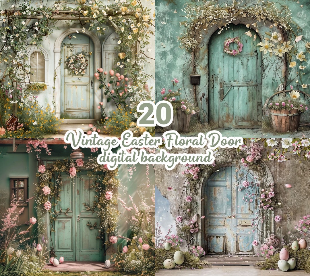 Vintage Easter Digital Backdrops, Floral Door Spring Digital ... - Etsy