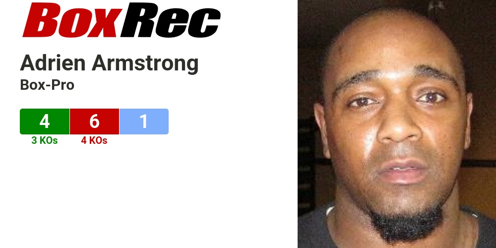 Adrien Armstrong ; rounds, 34 ; KOs, 75% ; career, 2009-2019 ; debut, 2009-06-19 ; ID#, 501338.