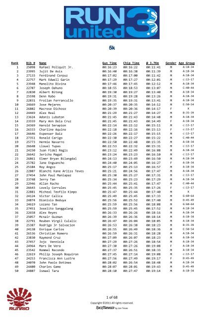 245 50034 AGNES GERONIMO 00:45:55. 00:46:32. 2011 runningmate.ph. Rank Bib Num Name ChipTime. Time. 246 ...
