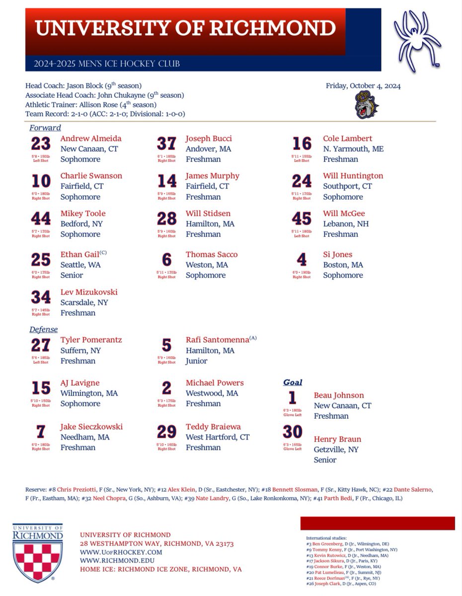 USA flag Andrew Lavigne. a.k.a. "AJ, A.J. Lavigne". #11 Univ. of Richmond / ACHA II - 24/25.