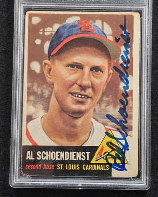 This 1952 Topps baseball card features Al "Red" Schoendienst, a Hall of Famer who played for the St. Louis Cardinals. The card is part of the base set and has ...