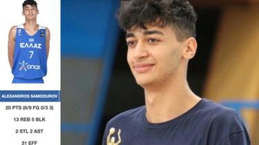 【U18】希腊前锋Alex Samodurov对阵捷克单场20分13篮板5盖帽