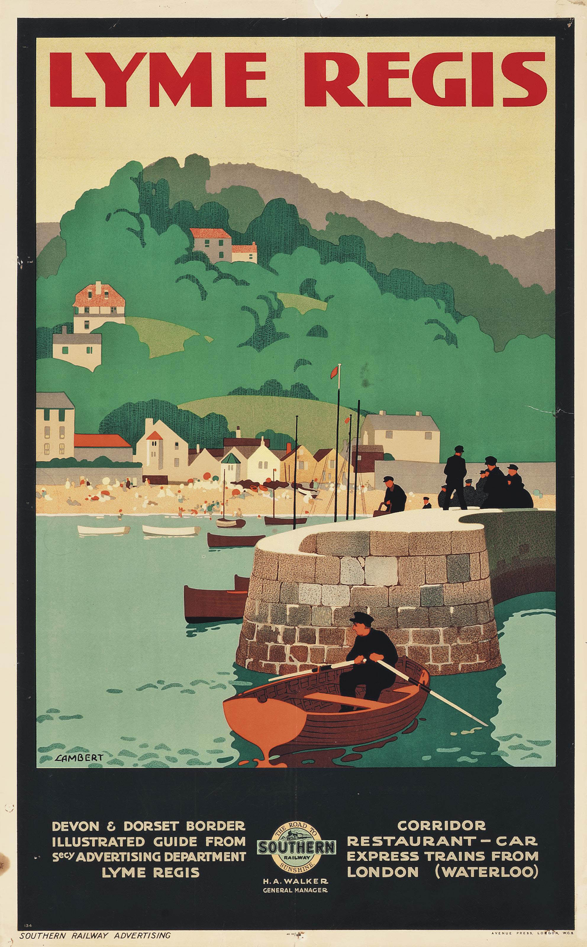 Alfred Lambert (1902-) LYME REGIS lithograph in colours, 1926, printed by Avenue Press, London, condition B; not backed 40 x 25in. (102 x 64cm.)
