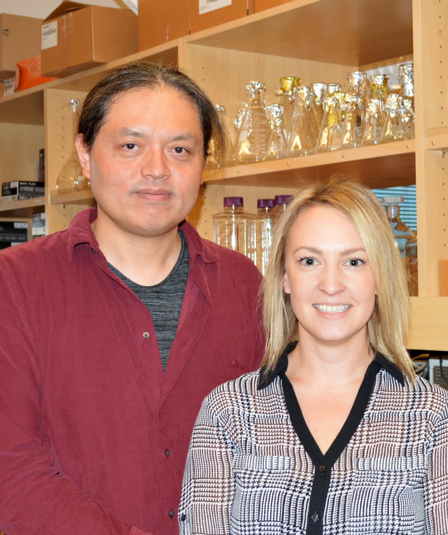 Co-senior author Nobuyoshi Suto (left) and first author Amanda Laque conducted the new study at The Scripps Research Institute.