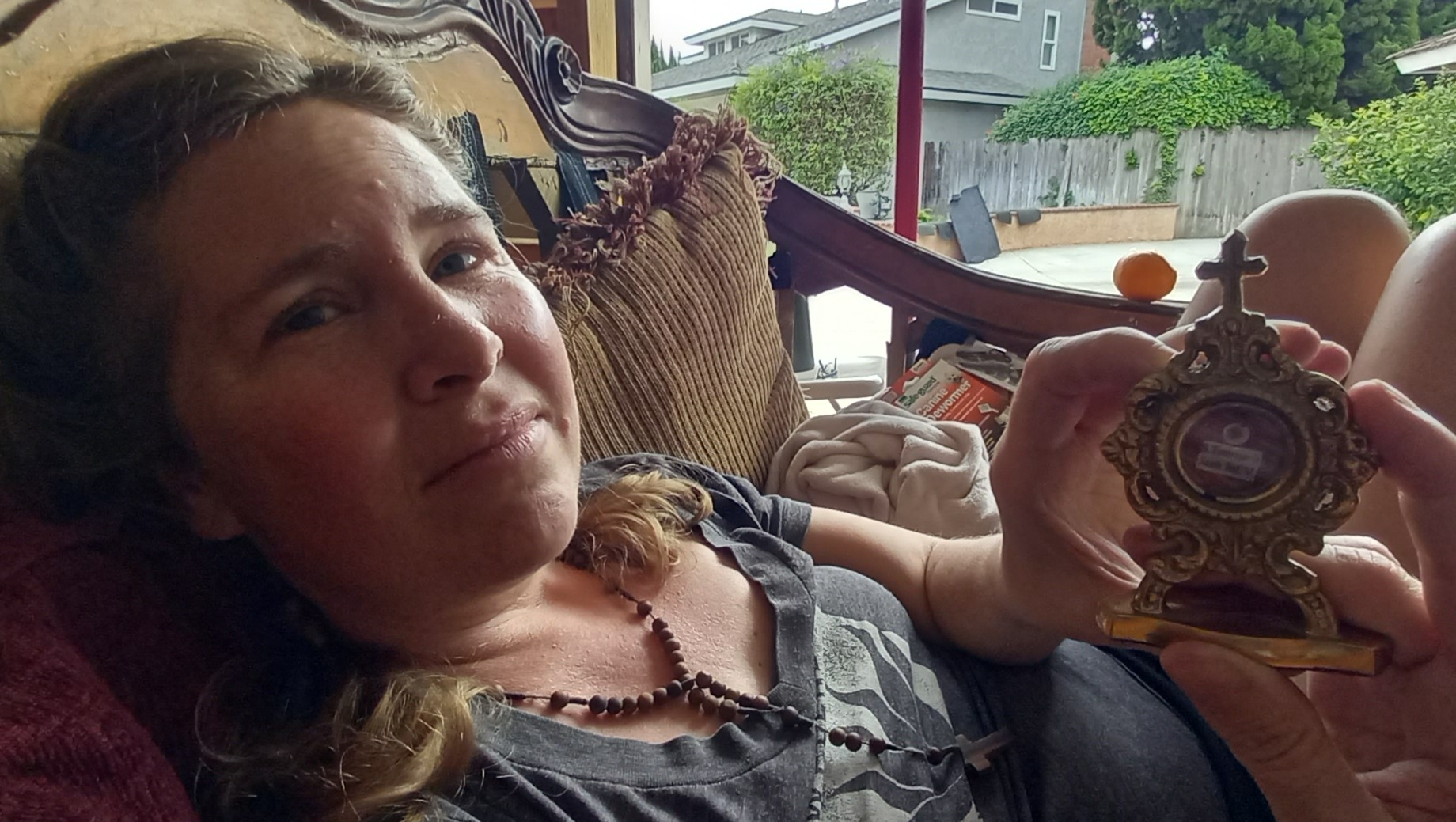 Woman in an open relationship with her chandeliers