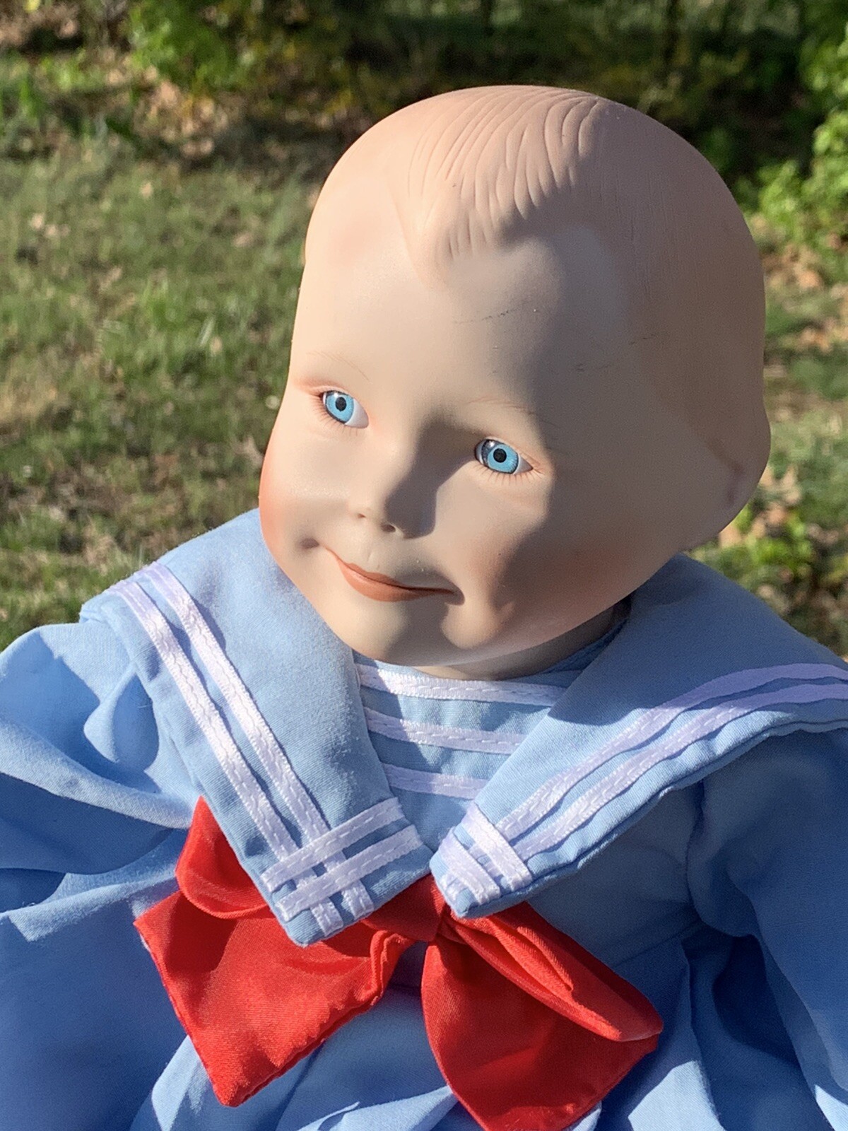 Amanda Sailor Porcelain Baby Doll Vintage Yolanda Bello Porcelain Amanda doll featuring a girl dressed in a soft blue sailor's outfit with a red bow and 3 ...