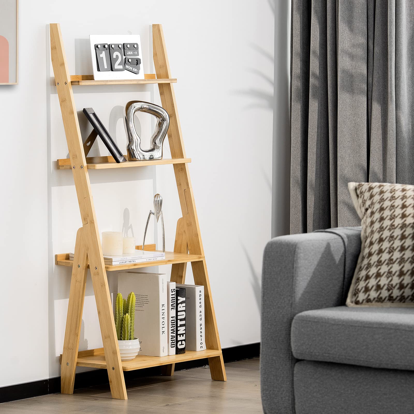 Giantex 4-Tier Bamboo Ladder Shelf, 21" x 12" x 47" Freestanding ...