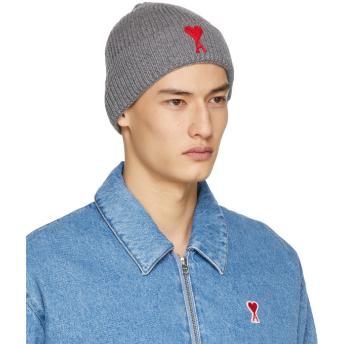 Heather Ash Grey Red Ami De Coeur Hoodie - Ami Paris
