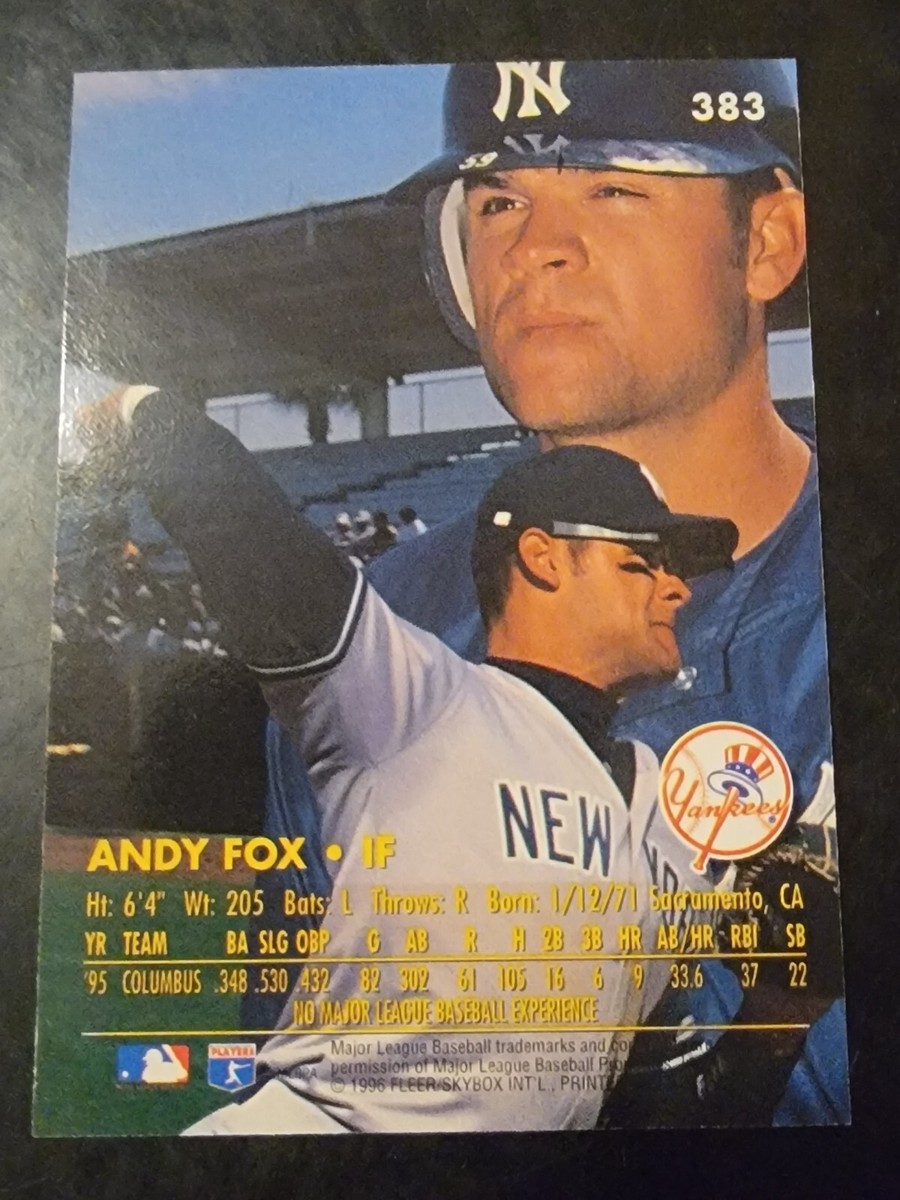 Andy Fox Bio · Fullname: Andrew Junipero Fox · Born: 1/12/1971 in Sacramento, CA · Draft: 1989, New York Yankees, Round: 2, Overall Pick: 45 · High School: ...