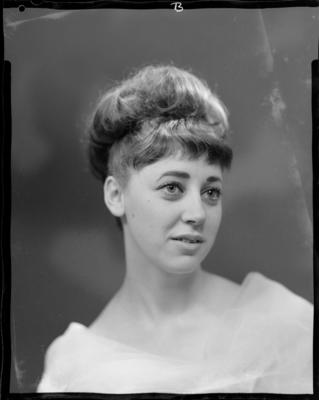 Ann Deacon seated with her hair styled up. Object detail: Artist/Maker: Bernard Woods Studio. Production role: Photographer. Production date: 20 Aug 1965.