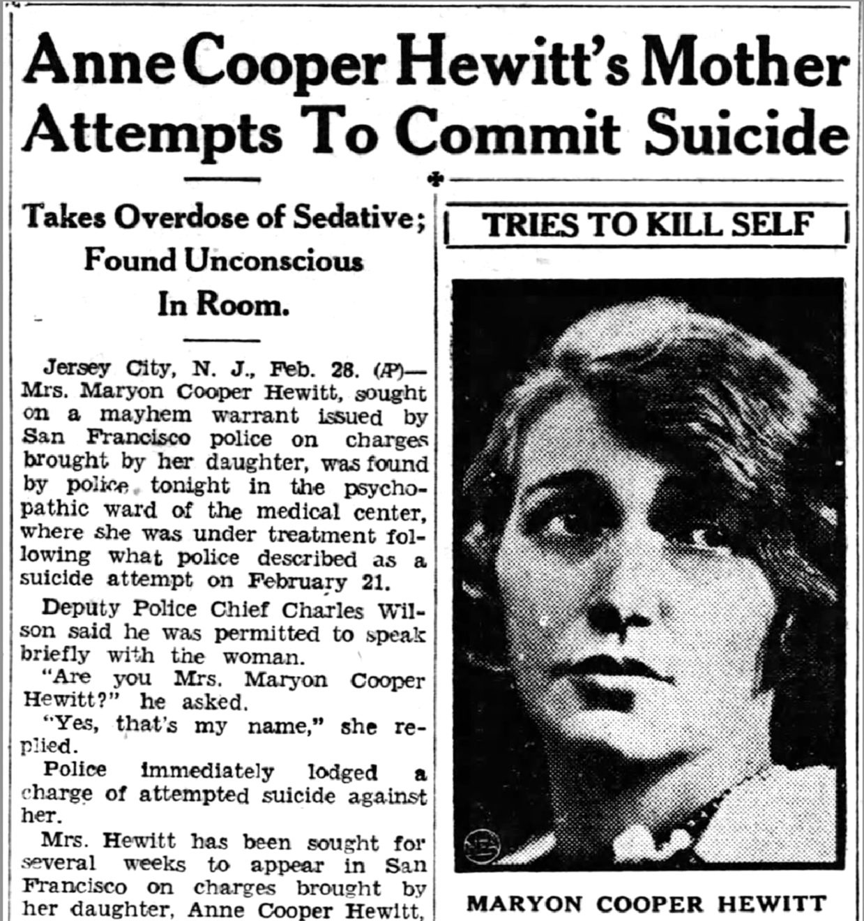 3 WARRANTS ISSUED IN ANN HEWITT CASE; Her Mother and Two Doctors Are Charged With Mayhem, Based on Operation. SAN FRANCISCO COURT ACTS Counsel for Mrs. Hewitt ...