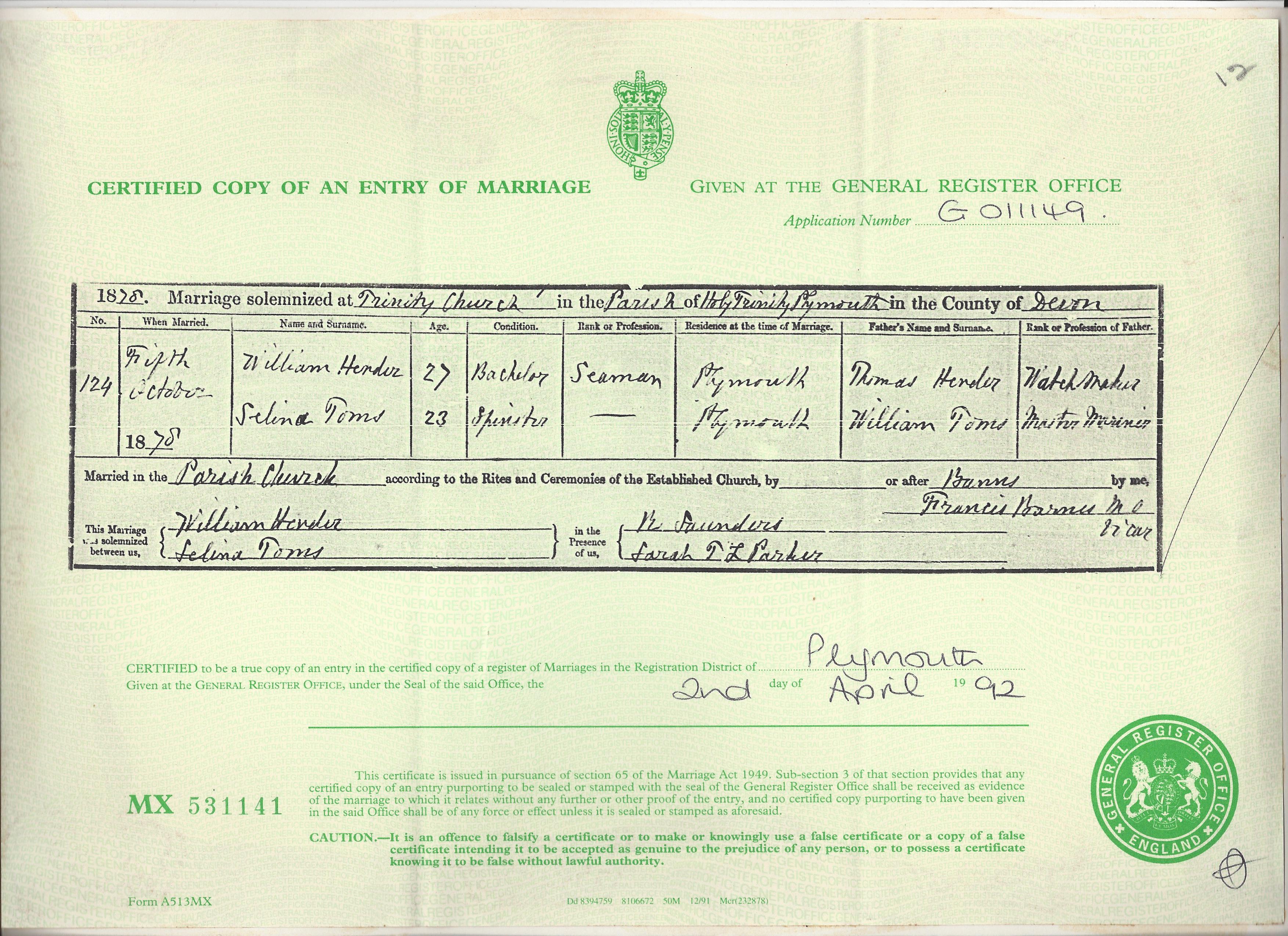 When Elizabeth Ann Keast was born on 30 June 1872, in Liskeard, Cornwall, England, her father, Robert Keast, was 34 and her mother, Harriet Hartnele Hooper, ...