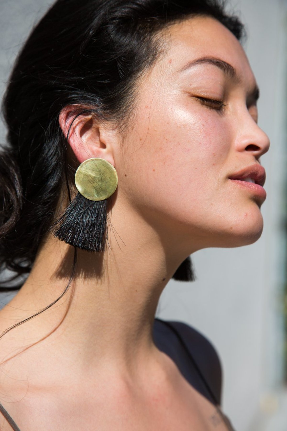 Natural black horsehair earrings by Anna Monet. + horsehair tassel earring + sculptural copper base + available in two lengths.