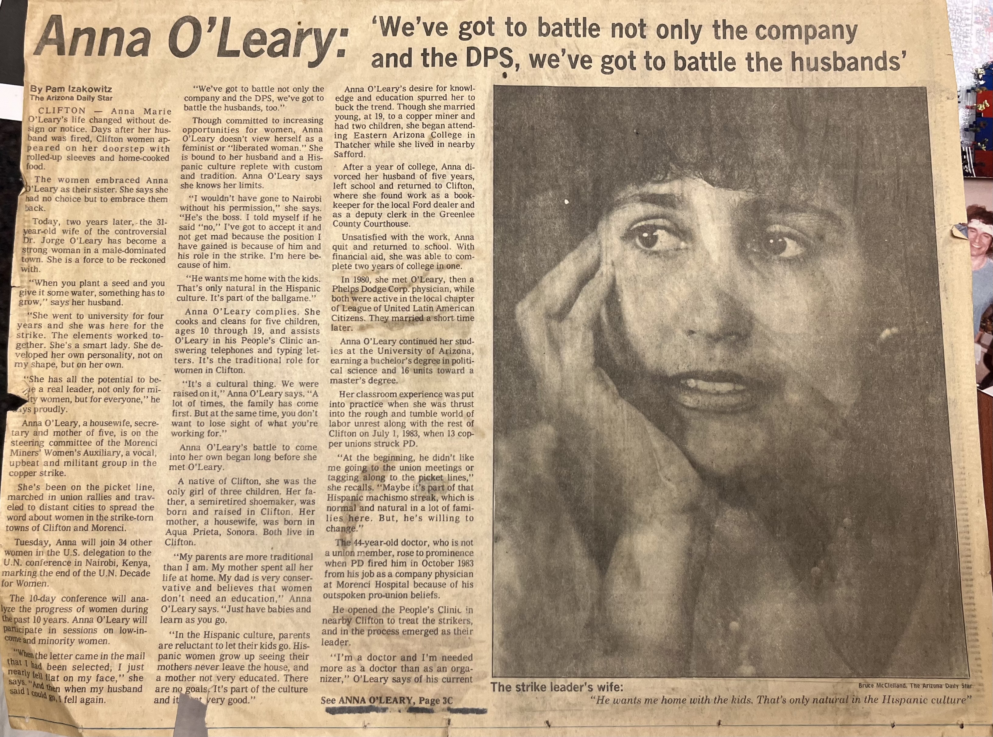 Anna Ochoa O'Leary grew up in Clifton, Arizona, where her father worked in the Phelps-Dodge mine. She became involved with the mining strike as a member of the ...