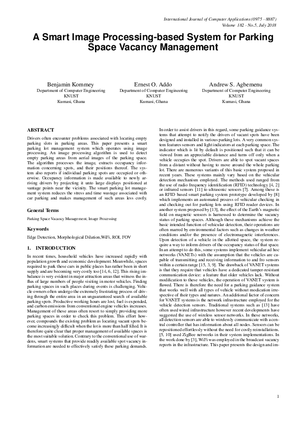 Marcos Lopez, Terry Griffin, Kevin Ellis, Anthony Enem and Christopher Duhan. 2019."Parking Lot Occupancy Tracking Through Image Processing ...