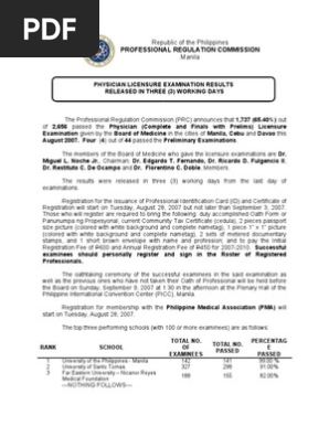 Physician Licensure Examination Results Released
