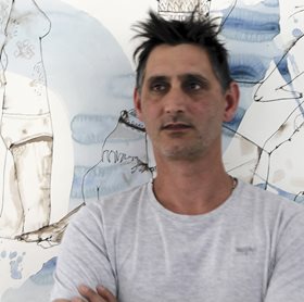 Anthony Muia (Australian, b.1966), 'Boys', 'Alice' & 'Nurse & Pink Curtains', 2000, a collection of three paintings by the same hand, mixed media on paper, ...