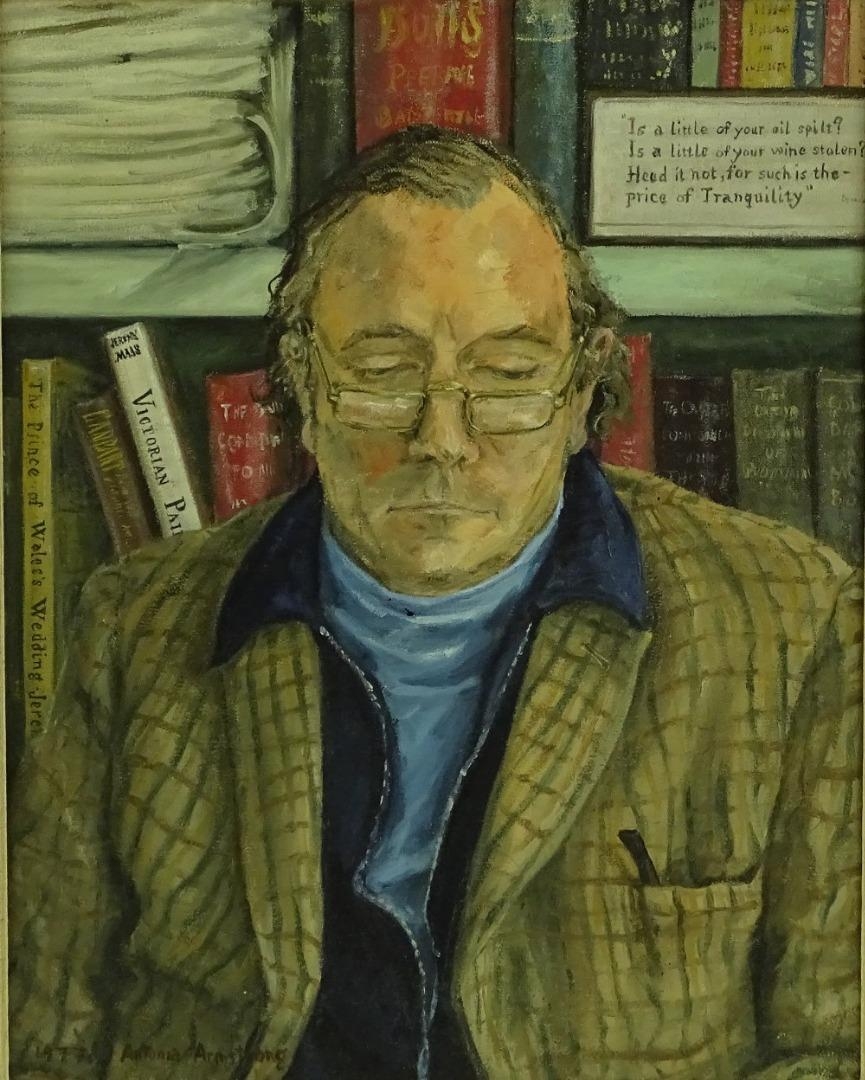 An outstanding and characterful portrait of the well-known art historian Jeremy Maas, by his wife, the artist Antonia Armstrong Maas (née Willis).