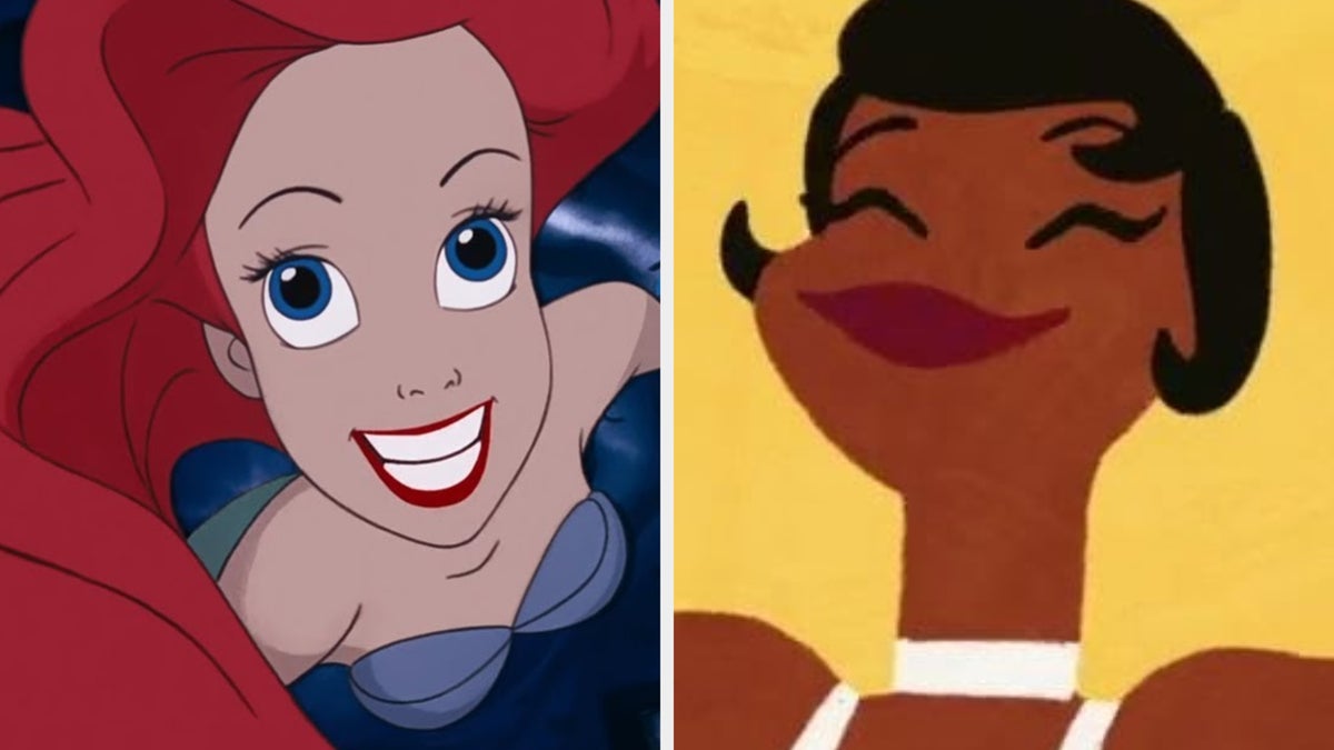(Prince Eric stops when he sees Ariel pick up her fork, and -with great skill -start to draw it through her hair, as with a comb.).