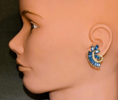 Add a touch of vintage beauty to your outfit with these stunning ASTRA Joseph Weisner Signed VTG 50s Deco Rhinestone Flower Clip Earrings.