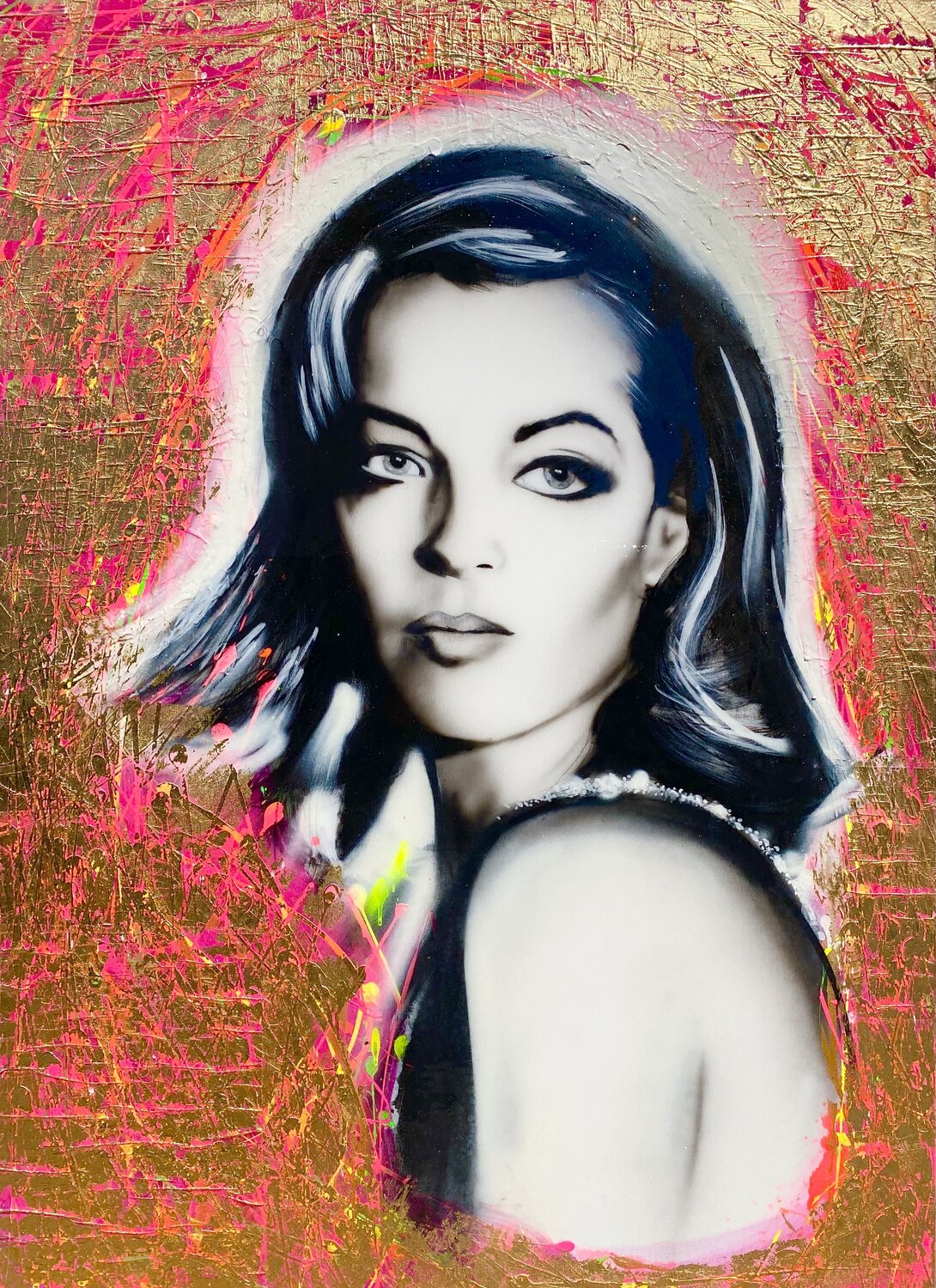 Closer look (6). VERY BAD HAIRDAY. Acrylic, Gilding on Canvas 12x12in. $880. AUDREY Gunter Wenzel. AUDREY. Closer look (6).