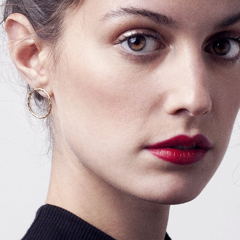 Our Babette Small Earrings are handmade French hoop earrings. Classic in style, they are made from golden engraved metal. Created in Paris by Chic Alors.