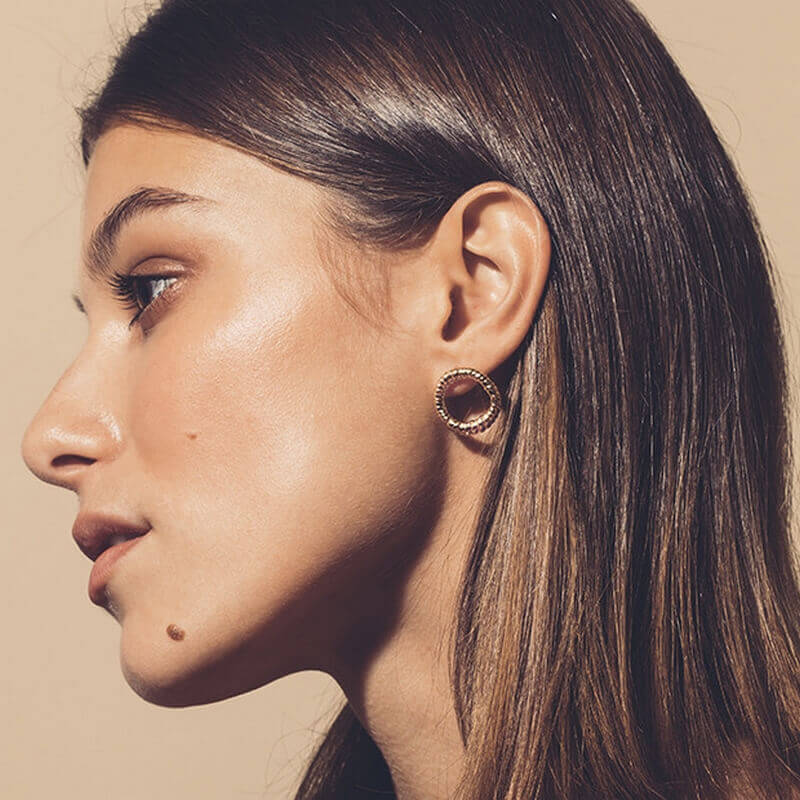 Babette Small Earrings Doré · Gold filled brass 24k · Silver posts to avoid allergies · Diameter: 2 cm.