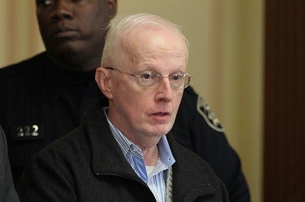 Barry Meehan, 65, of Warwick, a retired Catholic priest, is arraigned at Superior Court, Providence, on Friday on five counts of first-degree sexual assault ...