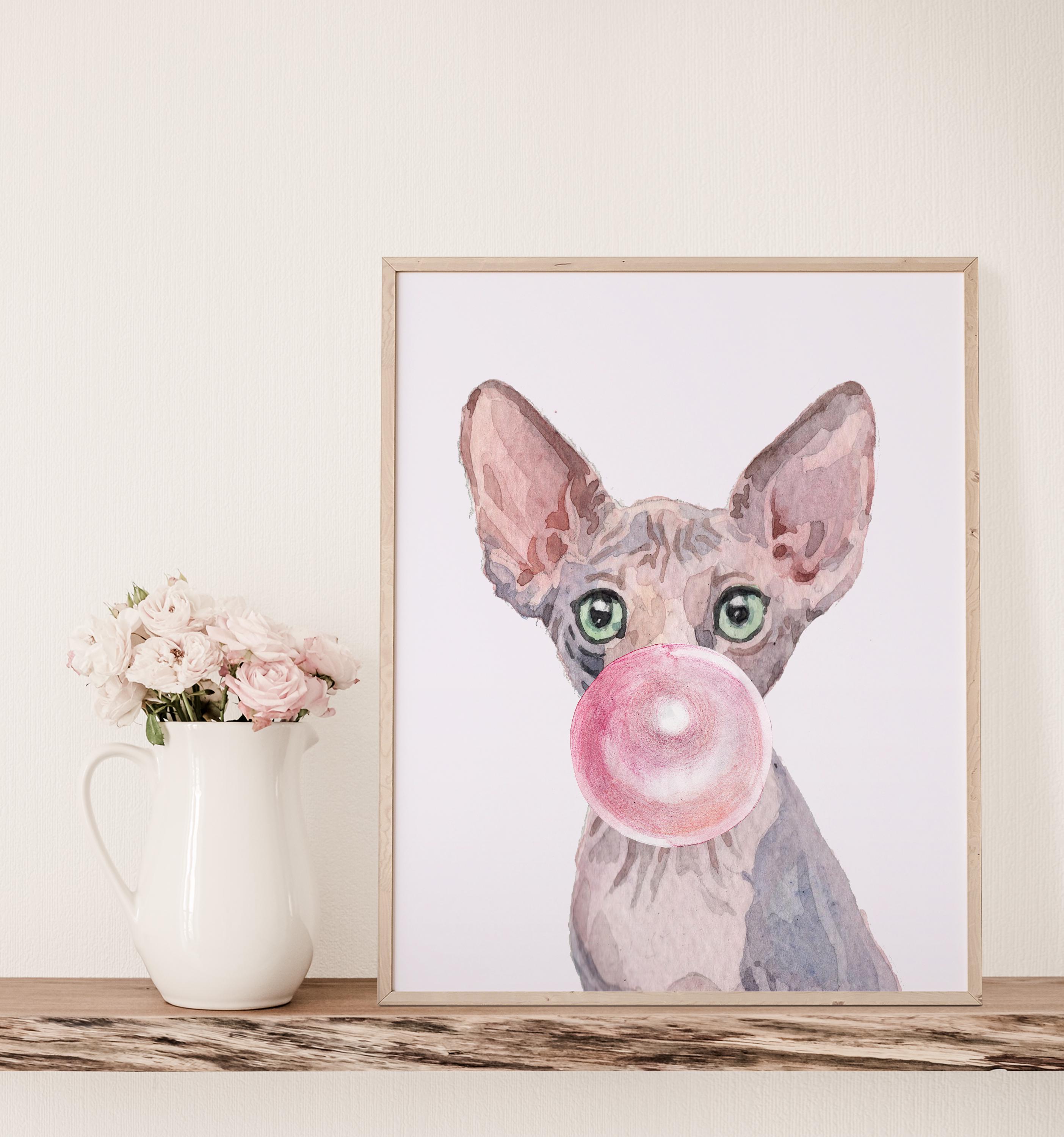 Sphynx Cat Art Print: Bubble Gum, Trendy Wall Decor - Etsy