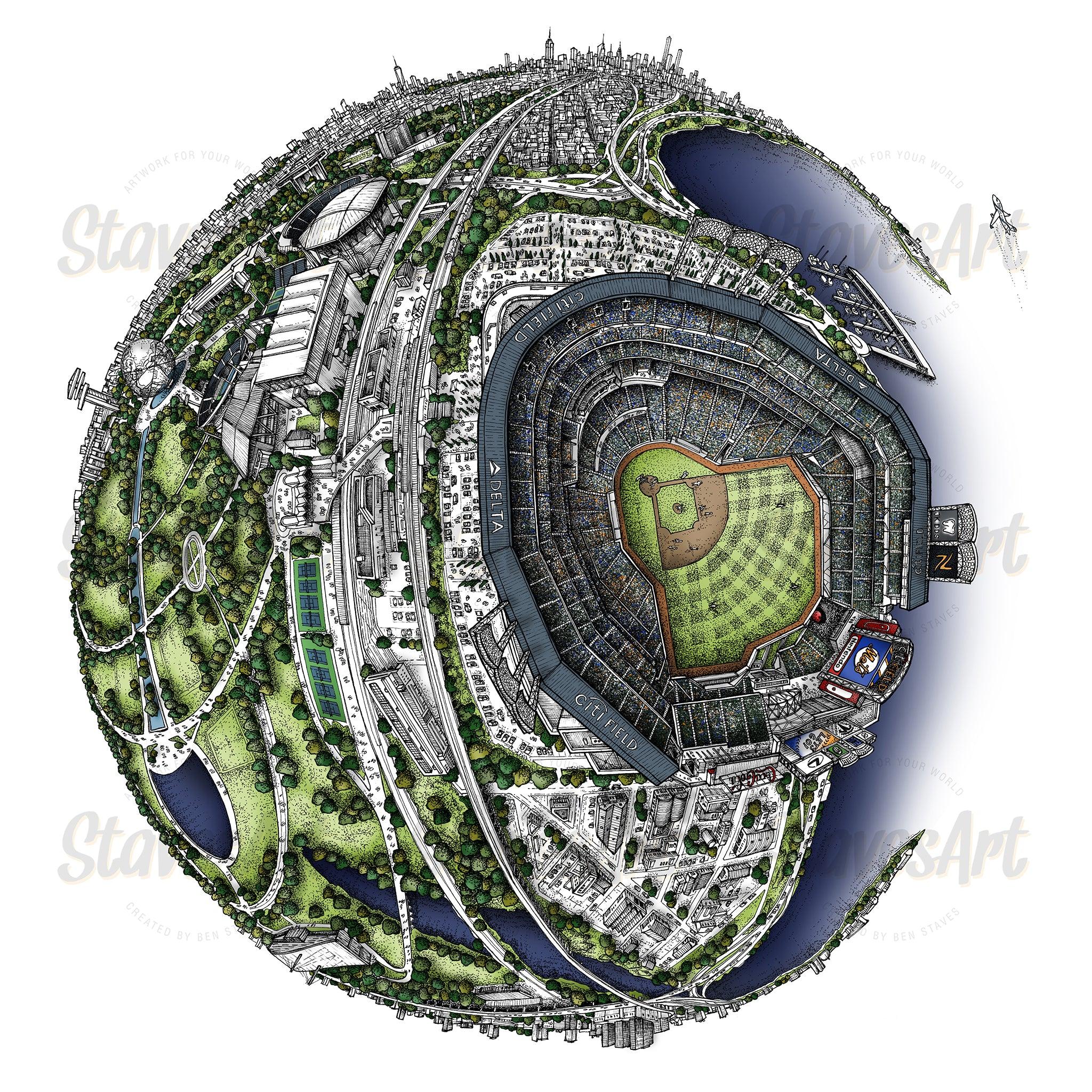 Artwork for your World - A collection of sporting venues hand drawn by artist Ben Staves in an unusual 3D globe style. See your world from a new perspective ...