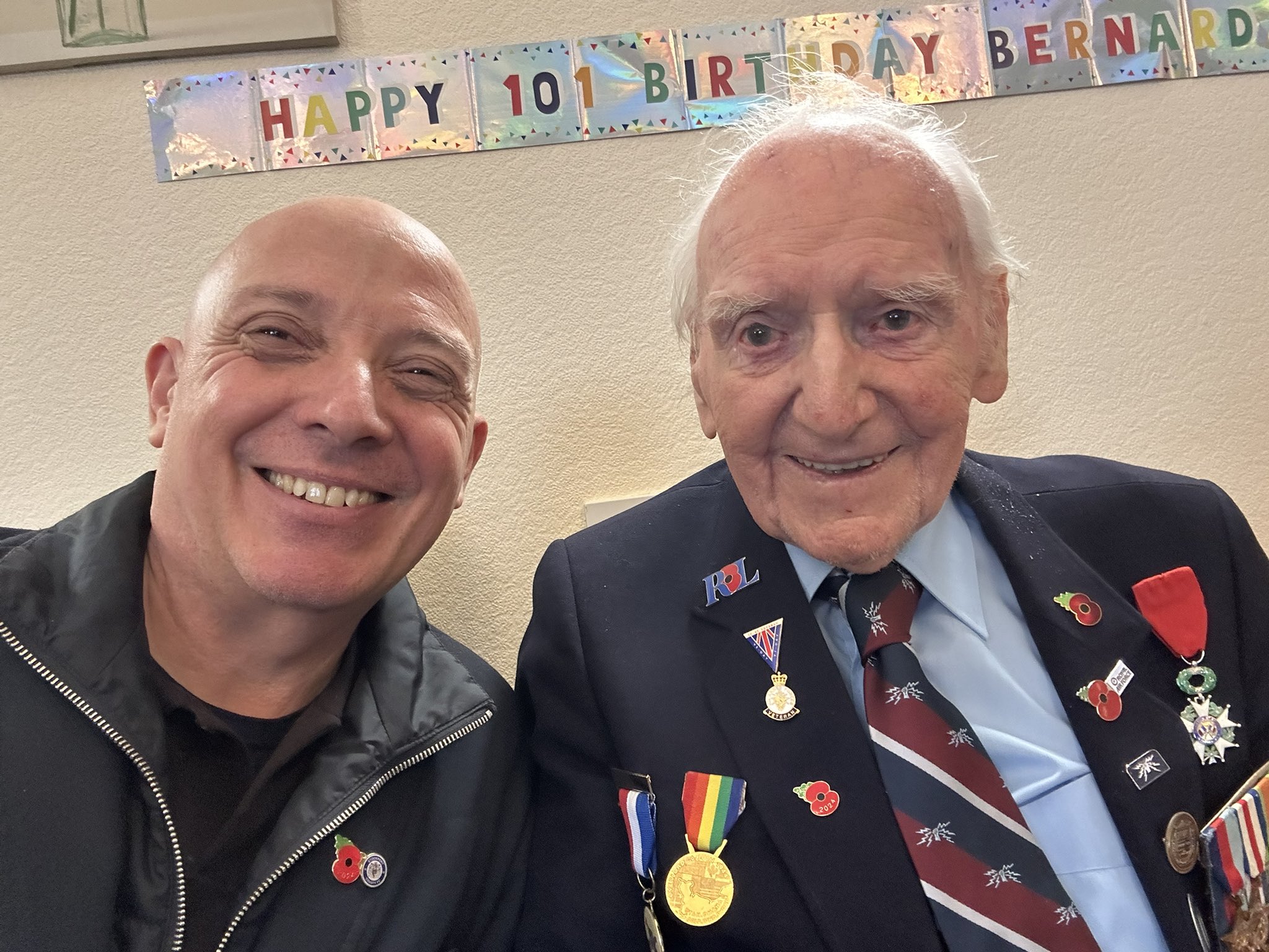 Bernard Morgan, journeyed to Normandy this week with over 30 former serviceman - with it emerging he became a great-grandfather again as he crossed the English Channel.