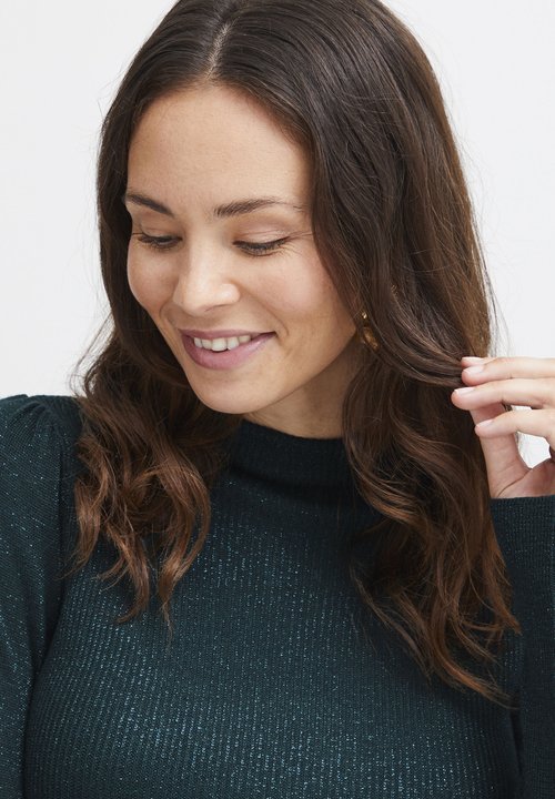 Shop the Bethany Cable Knit Sweater featuring a mock neck, hi-low hem, and cable knit design. Check it out on francesca's online!