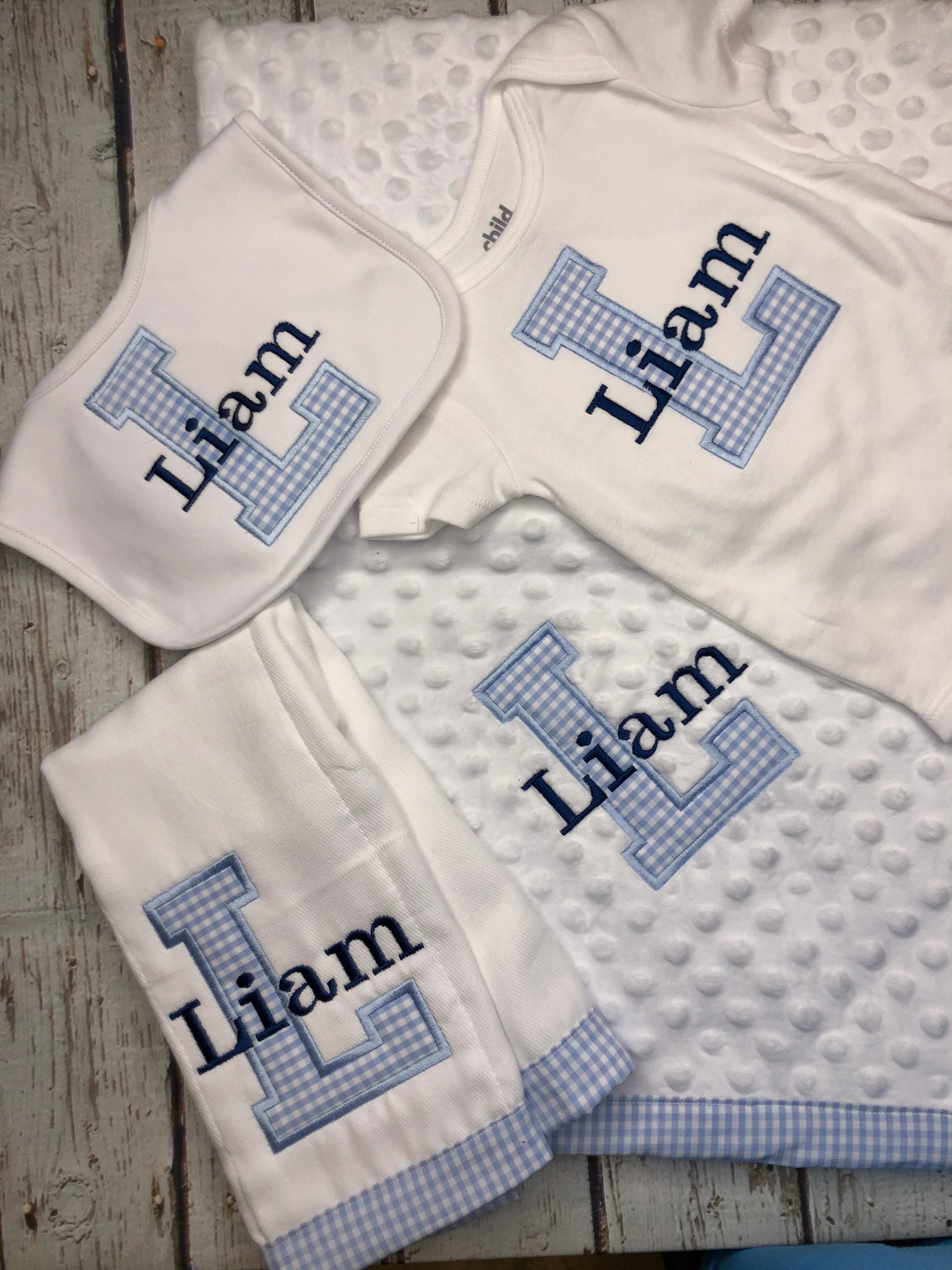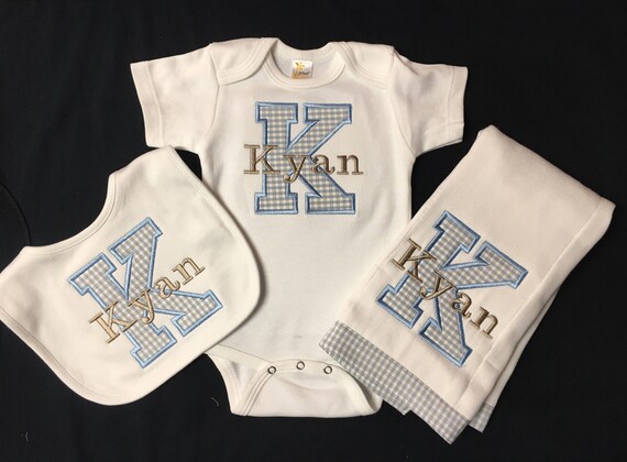Newborn Baby Boy Monogrammed and Appliqued Inital 3 OR ... - Etsy