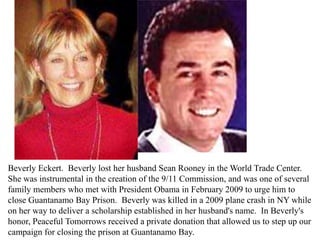 Beverly Eckert was a co-chair of Voices of Sept. 11 and worked closely with the group September 11th Families for Peaceful Tomorrows. Her husband Sean died while at work at a firm on the 98th...