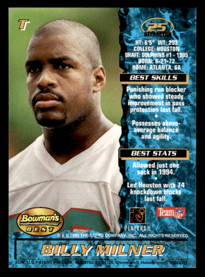 Singapore · UK · ESPN. Scores. BillyMilner. Offensive Tackle. Birthdate. 6/21/1972. College. Houston. Birthplace. Atlanta, GA. Follow. Overview · News · Bio.