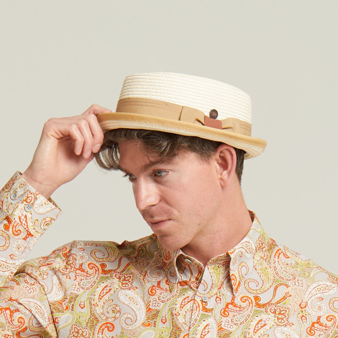 DASMARCA-Bobby-Ivory-white porkpie hat-retro porkpie-two tone porkpie hat-summer straw porkpie-vintage looking porkpie hat. Dasmarca. 5 out of 5 stars.