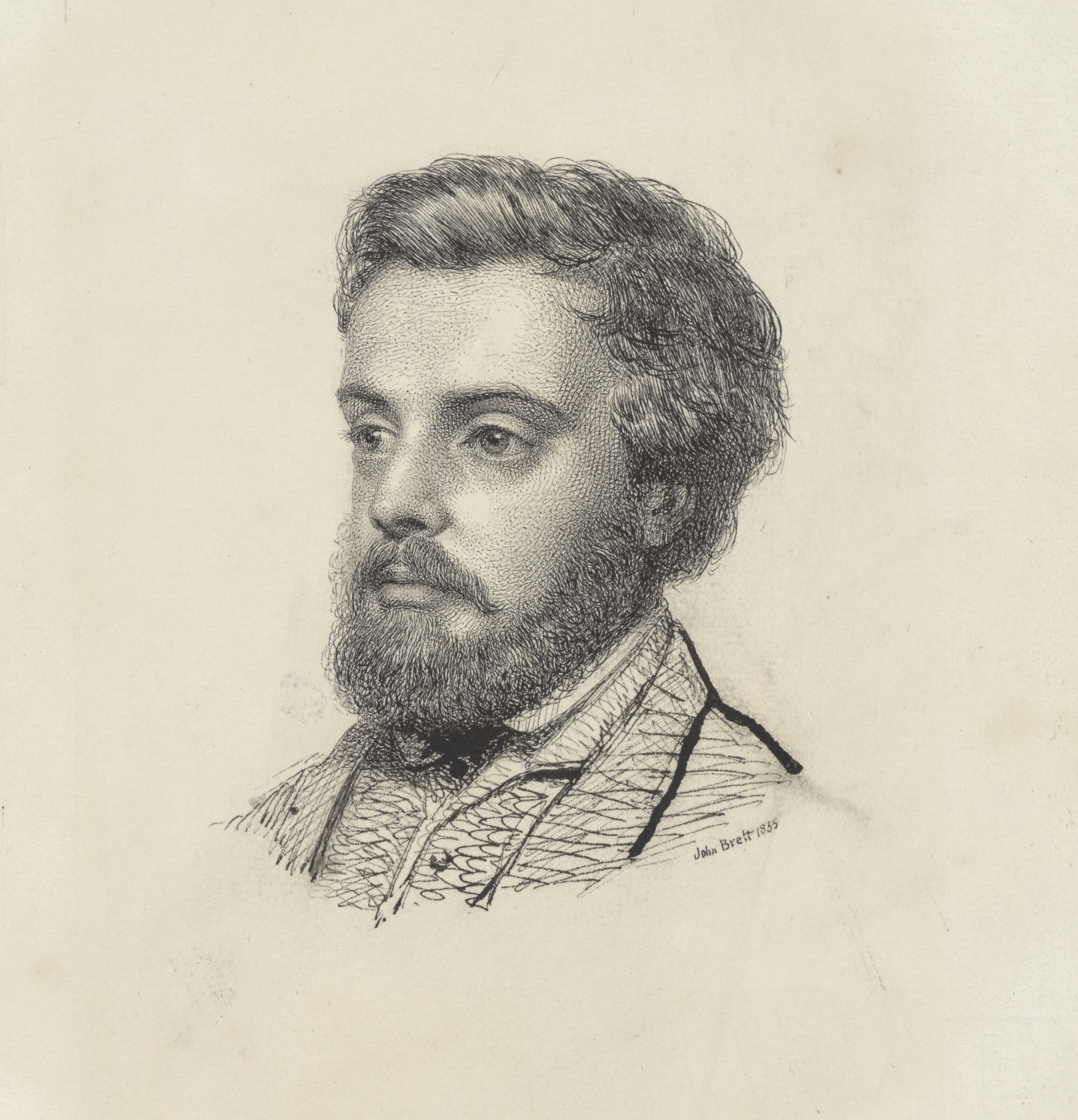 JOHN BRETT, A.R.A. (1831-1902) Portrait of Theodore Brett, small head and shoulders signed and dated 'John Brett 1855' (lower right) pencil, pen and ink on ...