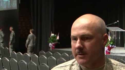 Brian Deshazo, 120th Engineering Battalion Executive Officer, at a farewell ceremony for more than 160 members of the 120th Engineer ...