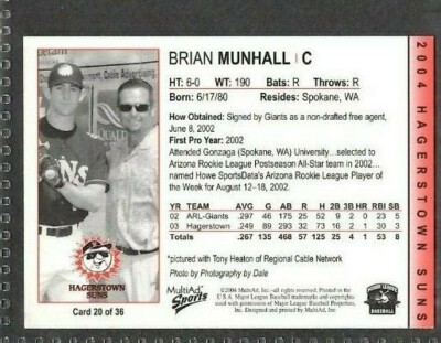 2004 Multi-Ad #20 Brian Munhall Hagerstown Suns Baseball ... - eBay