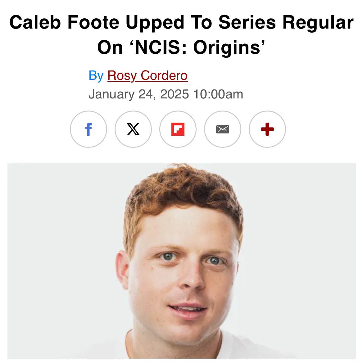 Caleb Foote, who plays NIS Special Agent Bernard 'Randy' Randolf on CBS' 'NCIS: Origins,' has been upped to a series regular.