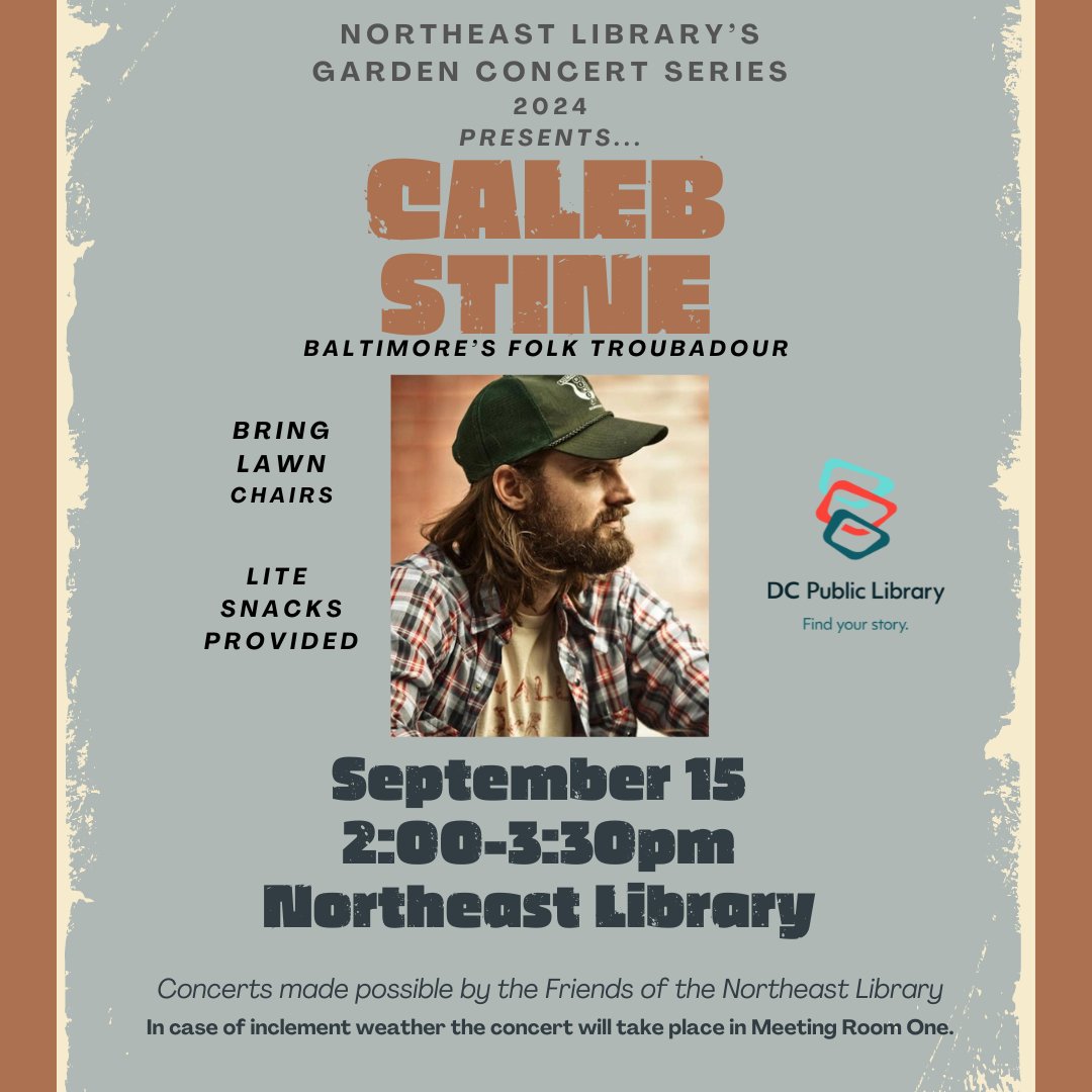 Join us for the sounds of Summer on Thursday, September 16, 2021 from 6pm-7:30pm featuring Singer/Songwriter Caleb Stine. FREE admission for the concerts.