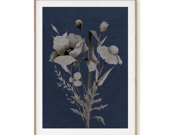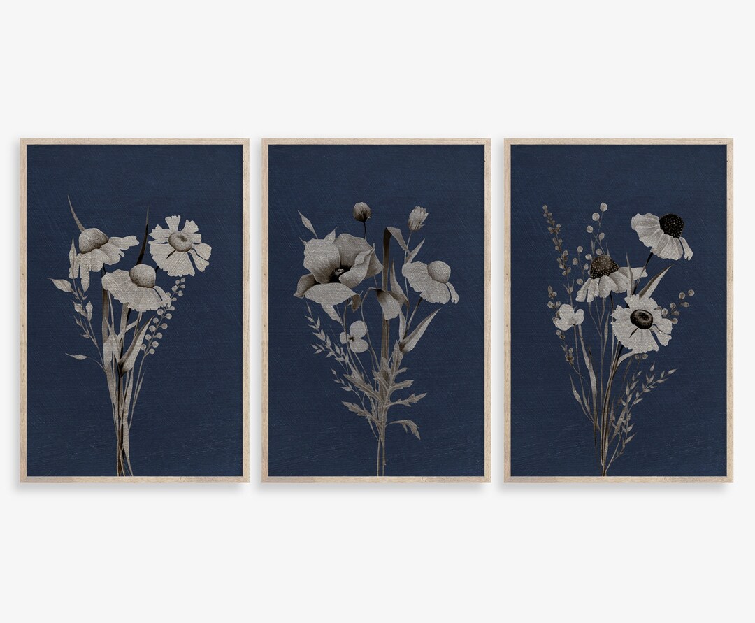 Printable Art, Botanical Print Set of 3, Gray Beige Wildflowers, Blue ...